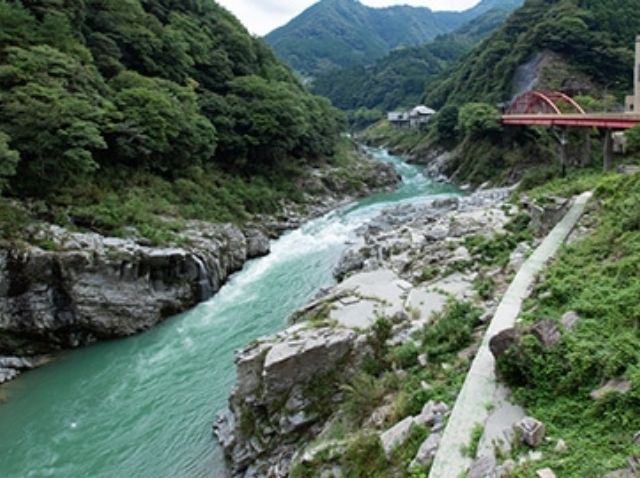 四季折々V字に切り立った大歩危峡の峡谷美。2億年の時を経て四国山地を横切る吉野川の激流によって創られた約8㎞に及ぶ渓谷。大理石の彫刻がそそり立っているかのような美しい景観を誇る。