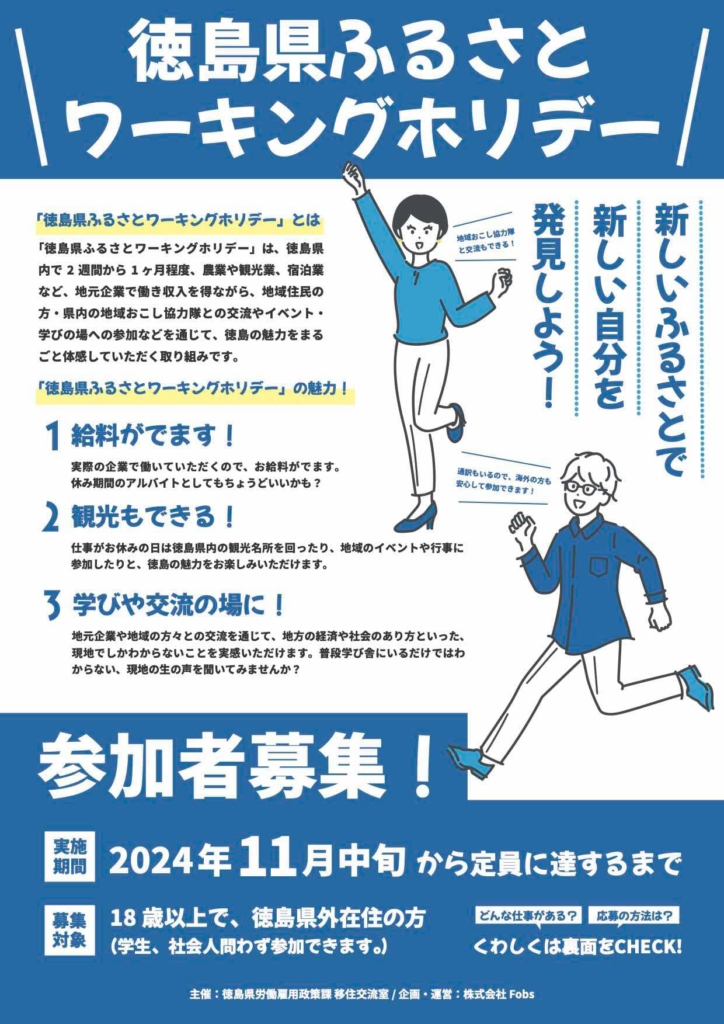 「徳島県ふるさとワーキングホリデー」の参加者募集スタートしてます!!